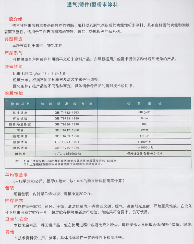 產(chǎn)品名稱: 透氣(鑄件)型粉末涂料